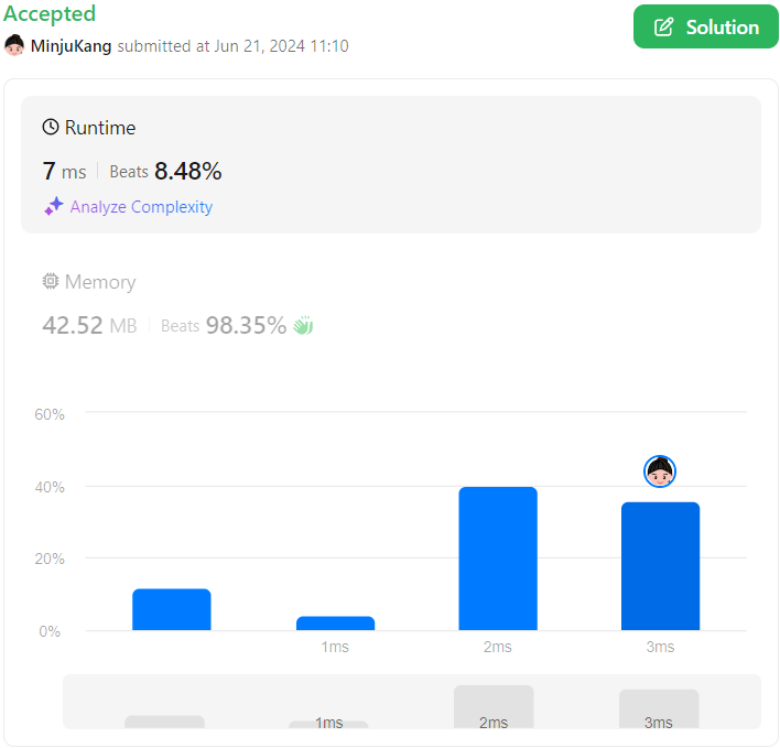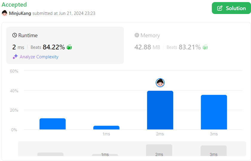 반복문으로 푼 코드가 실행 속도는 더 빨리 나왔다.