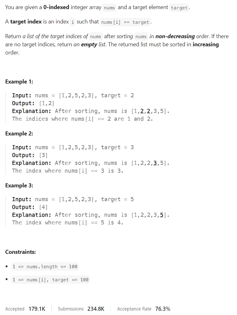 ℹ️ 2089. Find Target Indices After Sorting Array