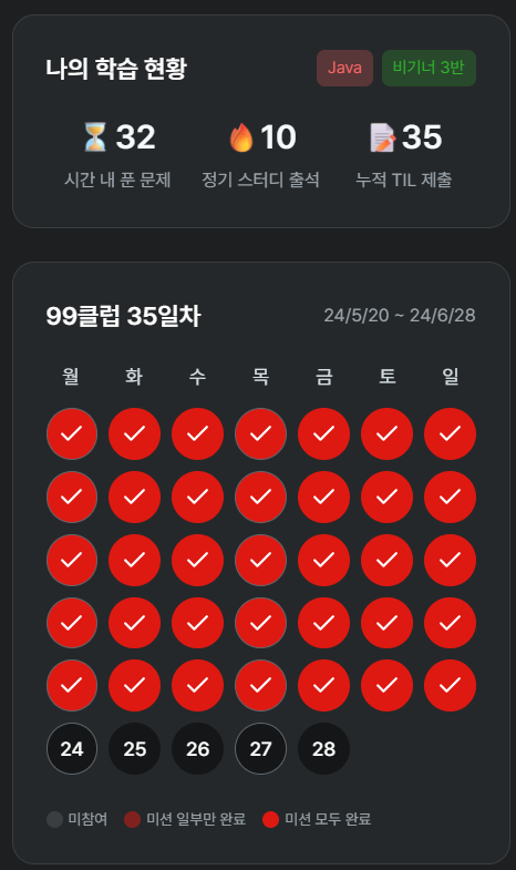 그것에 집중하느라 99클럽 과제는 많이 신경쓰지 못했다.