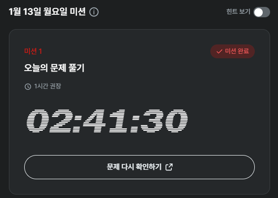 내일은 권장 시간 안에 문제를 해결하고 싶다.