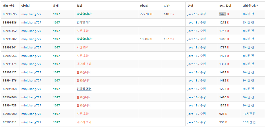 제일 위에가 최신 제출이므로 내가 제출한 풀이이고