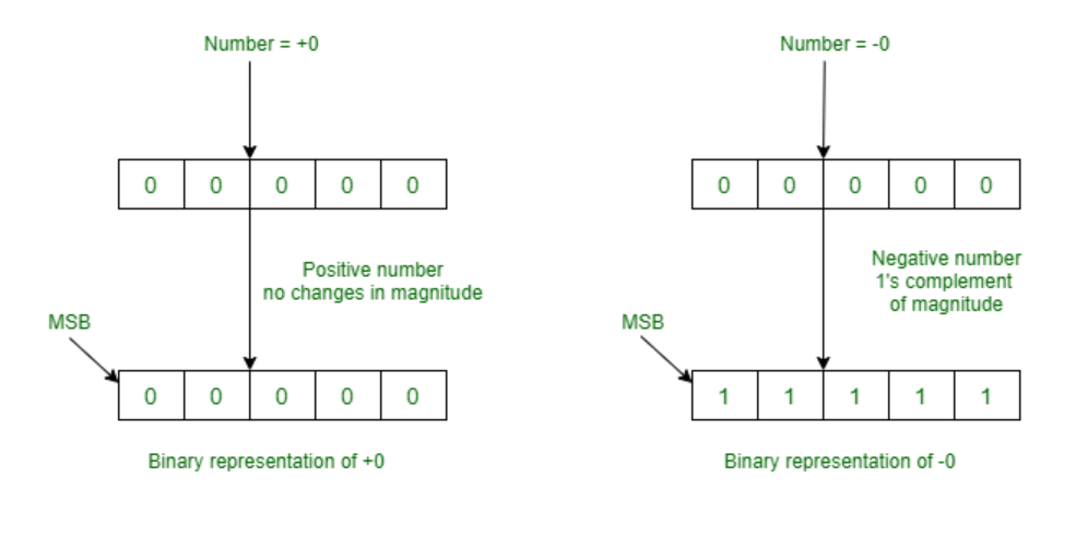 0의 두가지 표현 방식이 나오며 비트 연산의 어려움이 있음.