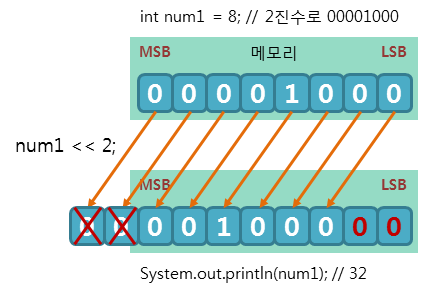 bit 값을 왼쪽으로 이동(빈 자리는 0으로 대입)
