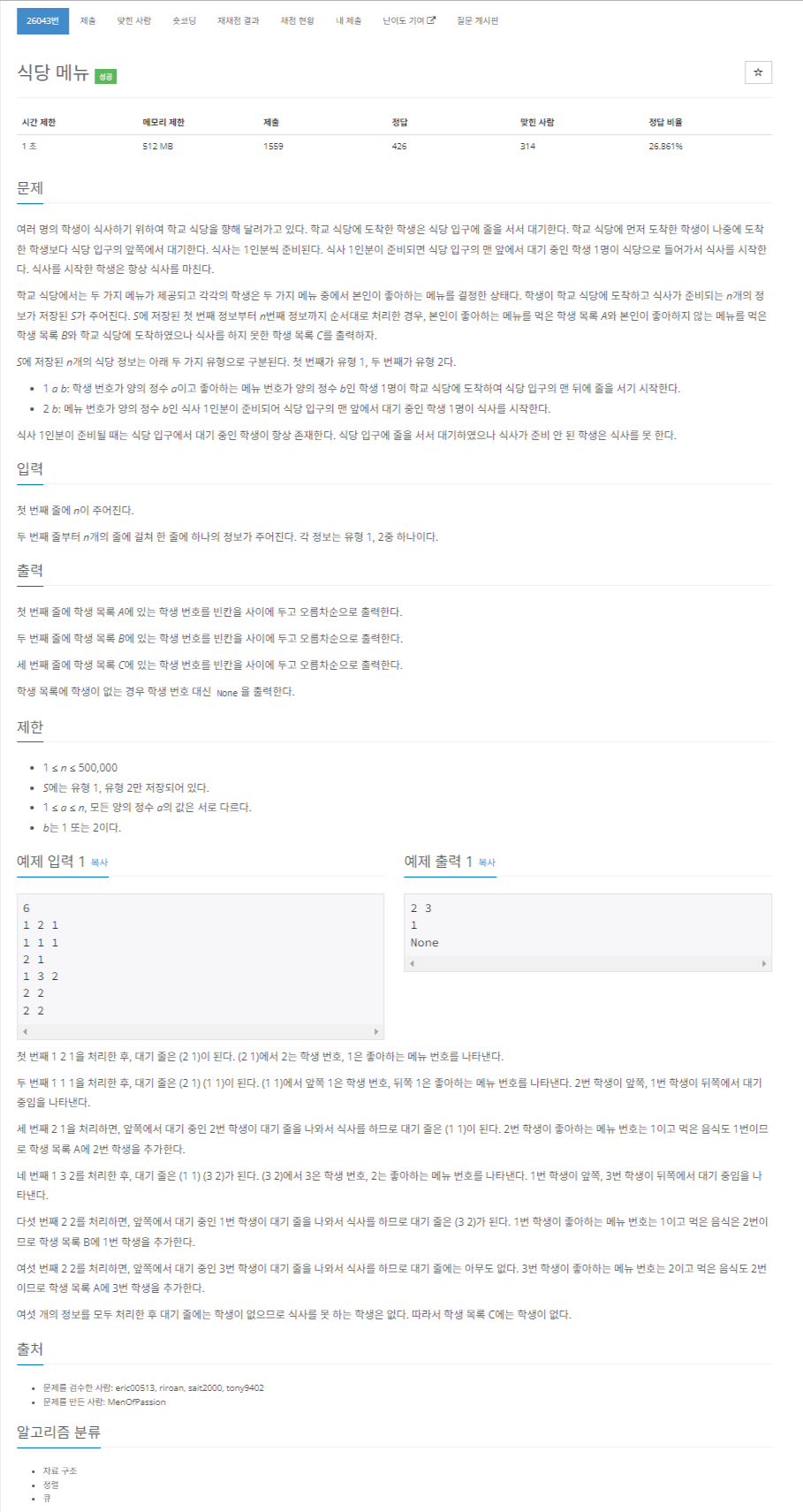 student: 길이 2인 학생 정보를 담을 배열student[0]: 학생 번호student[1]: 좋아하는 메뉴