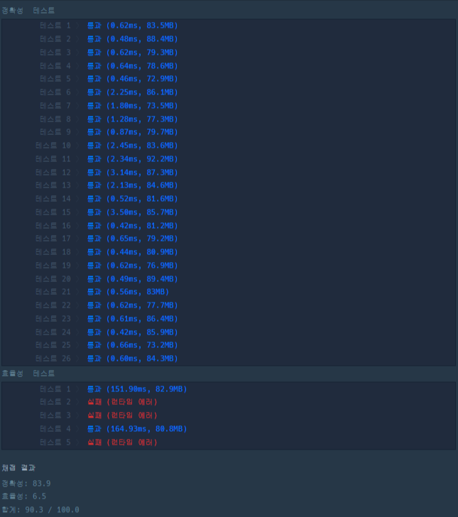 효율성 테스트에서 런타임 에러가 발생하였습니다.