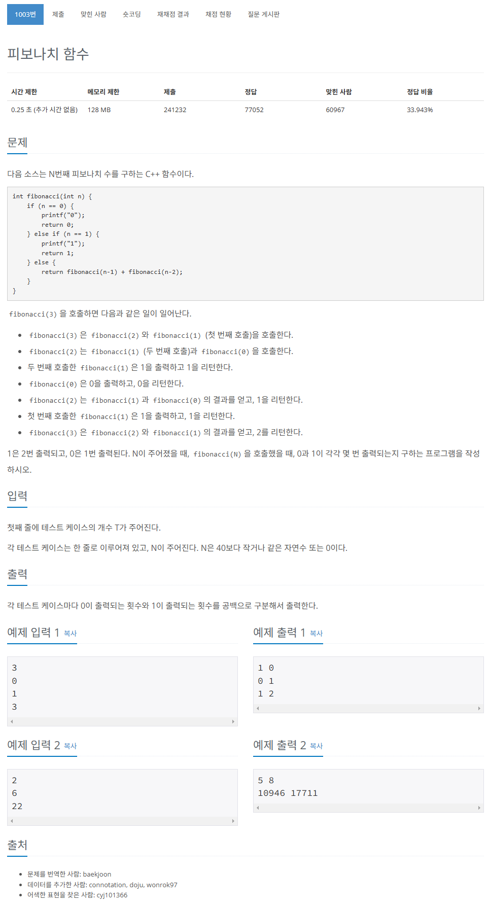| 1003번 / 피보나치 함수 |