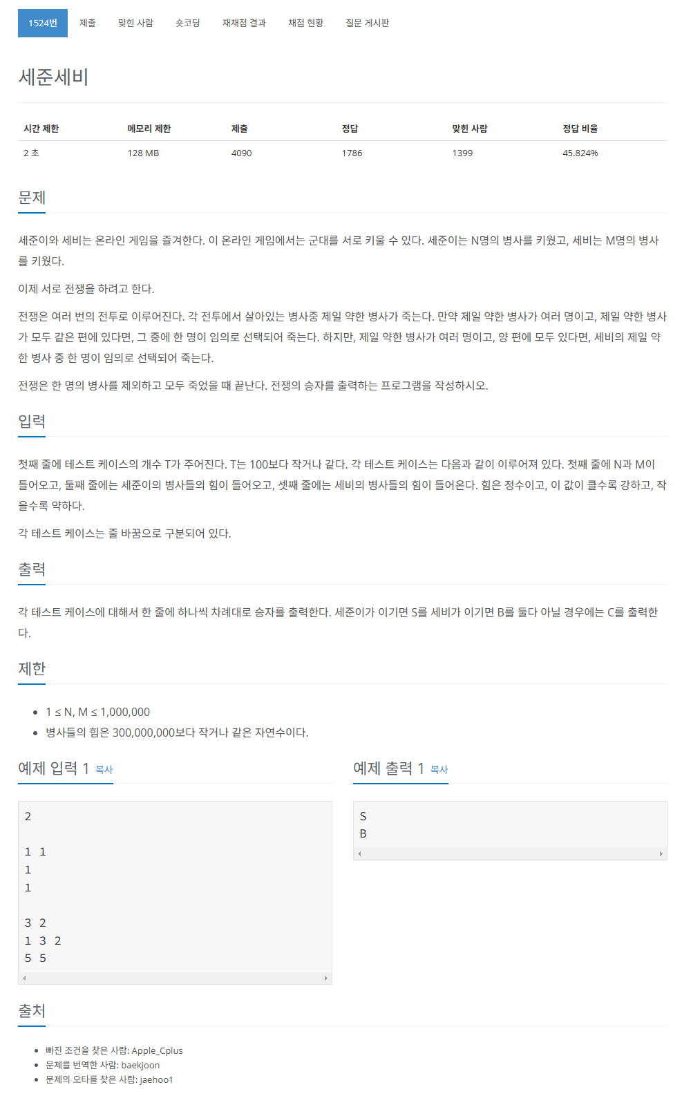 세준의 가장 센 병사보다 강한 병사가 나오면 바로 승자가 결정되므로 완전 탐색하지 않아도 될 것 같아서