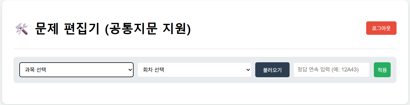 - 시험 과목/회차 선택 후, 불러오기 버튼 클릭