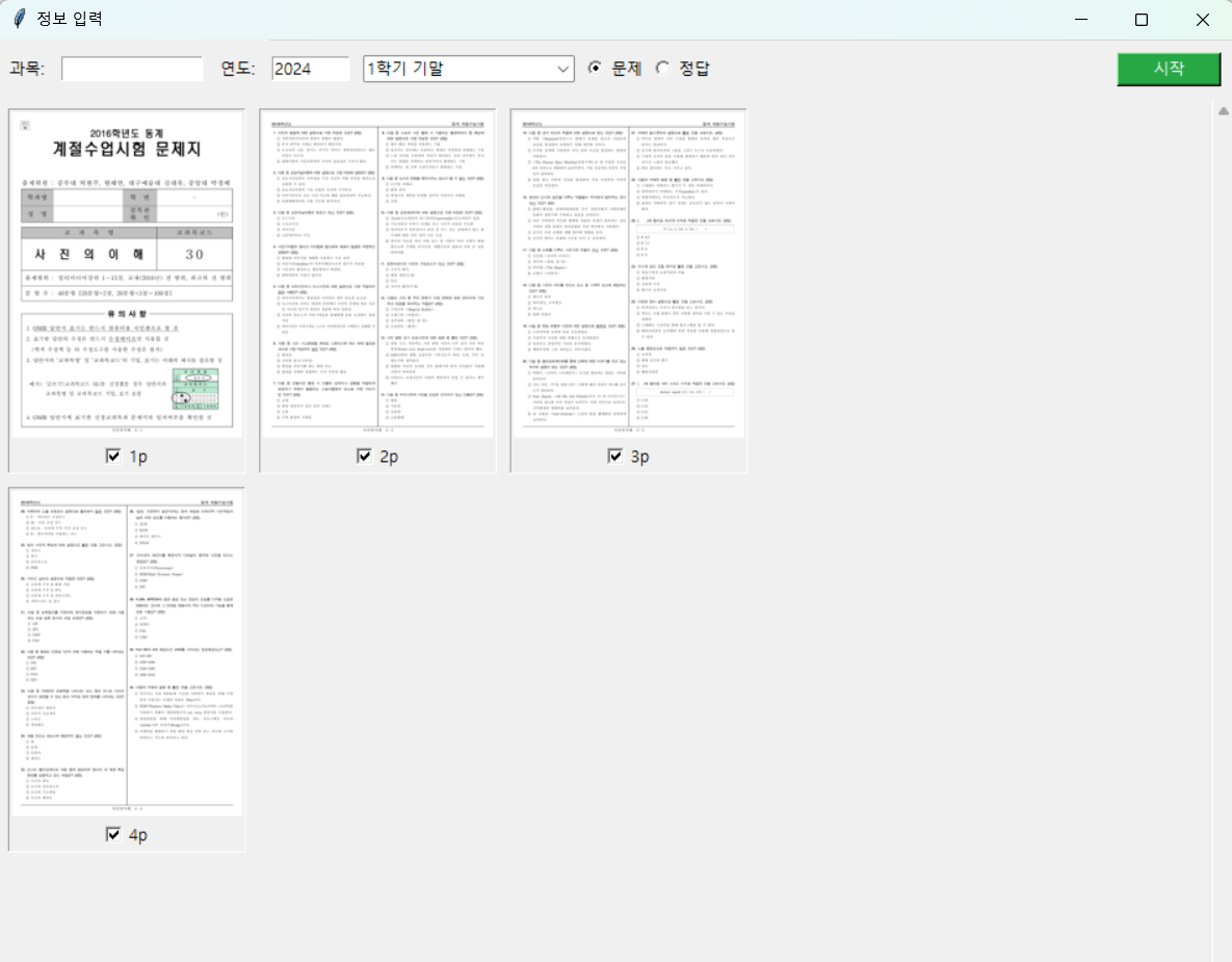 - 과목명/연도/시험 구분(1학기 중간/기말, 동계 계절하기 등...) 입력