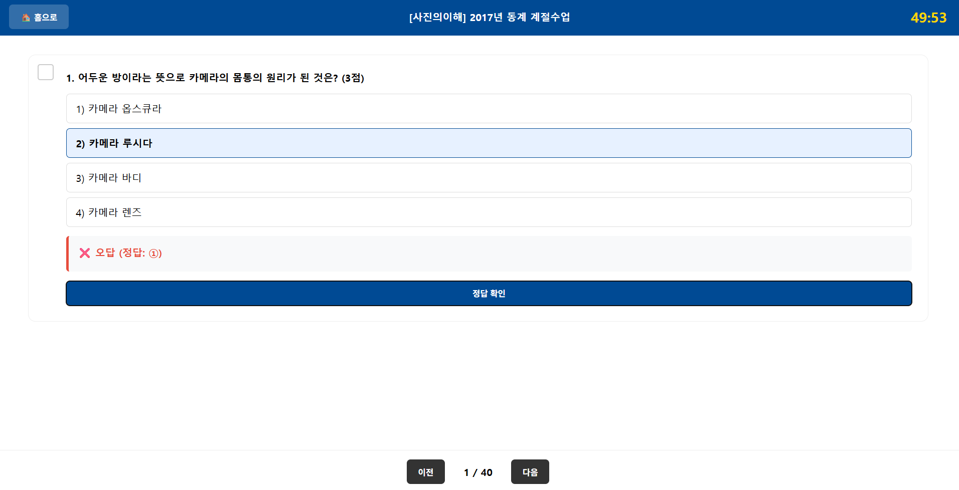 🏠 홈으로 돌아가기 시험 결과 ❌ 오답 및 정답 확인 홈으로