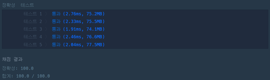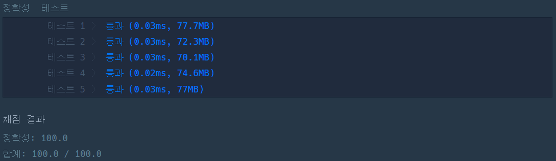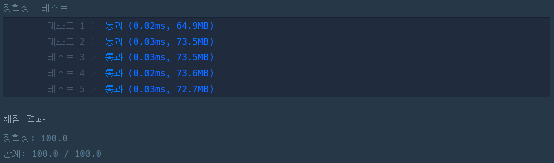 이번 문제는 코딩테스트 입문 단계의 문제라 이 방법이 가장 무난하지 않을까? 생각해 보면서 코드를 써 보았다.